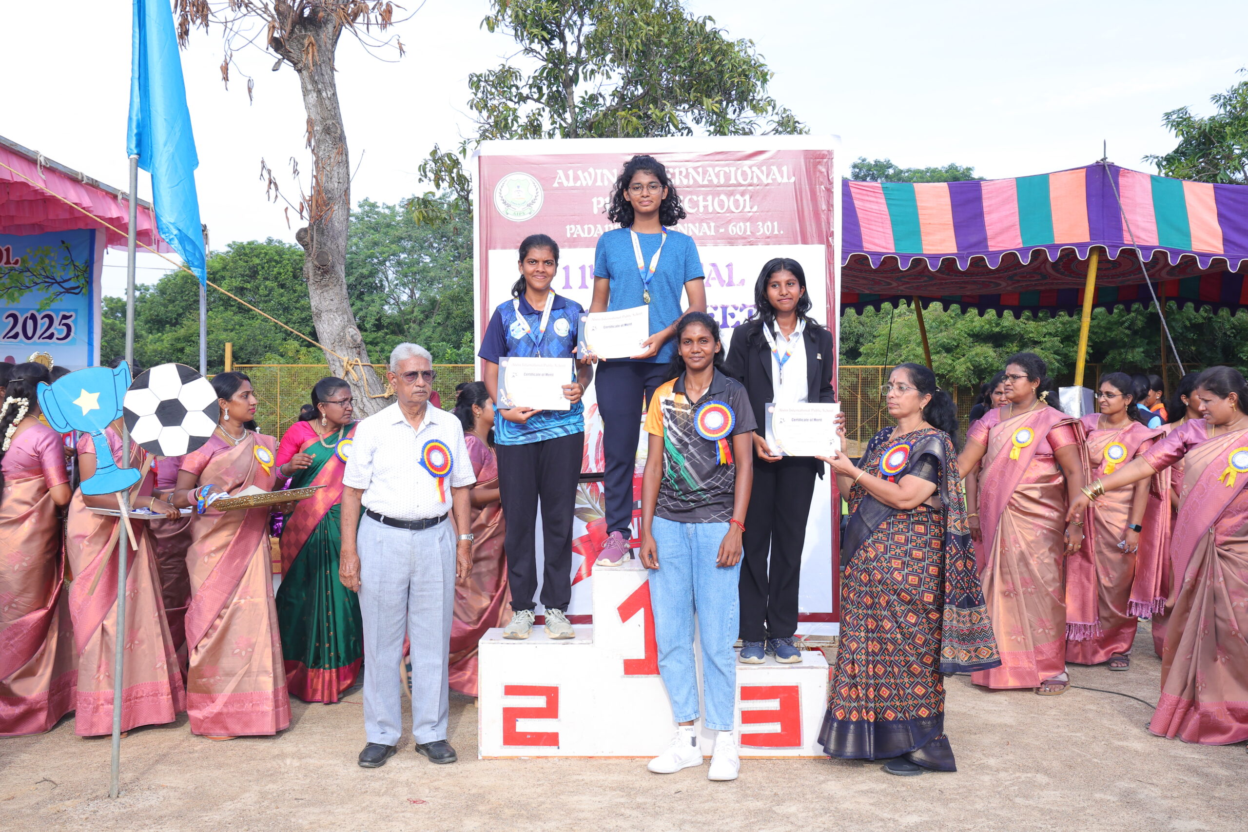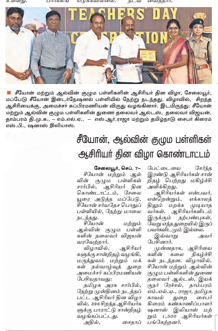 Respected A. Amalraj, Commissioner of Police,Tambaram honours the winners of The Zion and Alwin group of schools